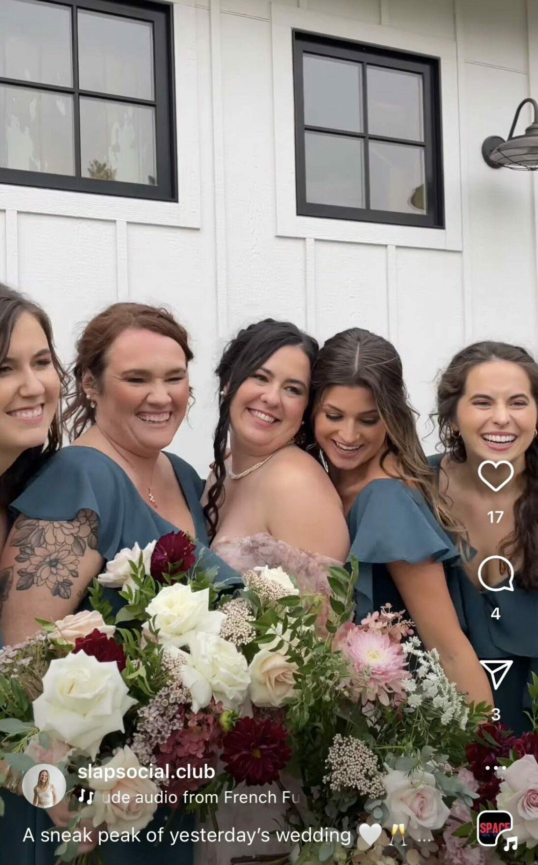 I got engaged in the fall of 2023 and immediately fell in love with wedding planning. With my wedding coming up in 2025, I struggled to find someone trustworthy enough to take candid videos. We consume most of our video content through the lens of an iPhone via social media, which is very candid, shareable, real, and that’s the video aesthetic I desired for my wedding day. Slap Social Club was formed out of a deep need in my community – the lack of wedding content creators. I quickly recognized the demand for this new field and launched head-first into wedding content creation. What’s ironic is that I always wanted to stay as far away from the wedding industry as possible. I never wanted to get involved on a professional level.