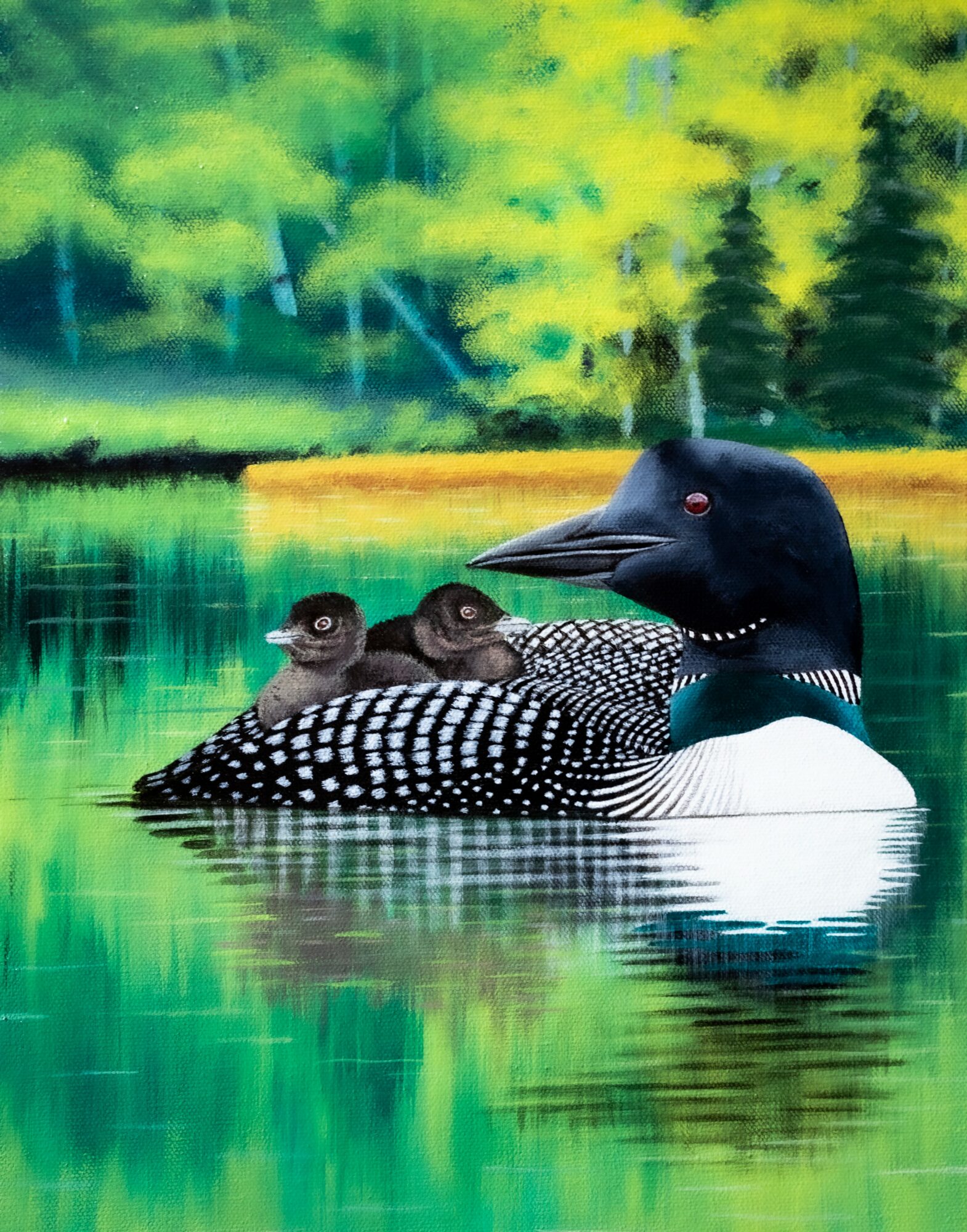 My art tends to be more on the realism side, though I may create more impressionism backgrounds for my subject. I also know that wildlife art has to appeal to the viewer, and not all people like animals, so when someone resonates with my art, it is magical, whether they buy it or not. I do have gallery representation at both Siiviis in Duluth, MN and at Ghost Ship Gallery in Washburn, WI, and I do participate in individual and group shows, where I have done the most is using social media as your art becomes distributed to such a massive audience.