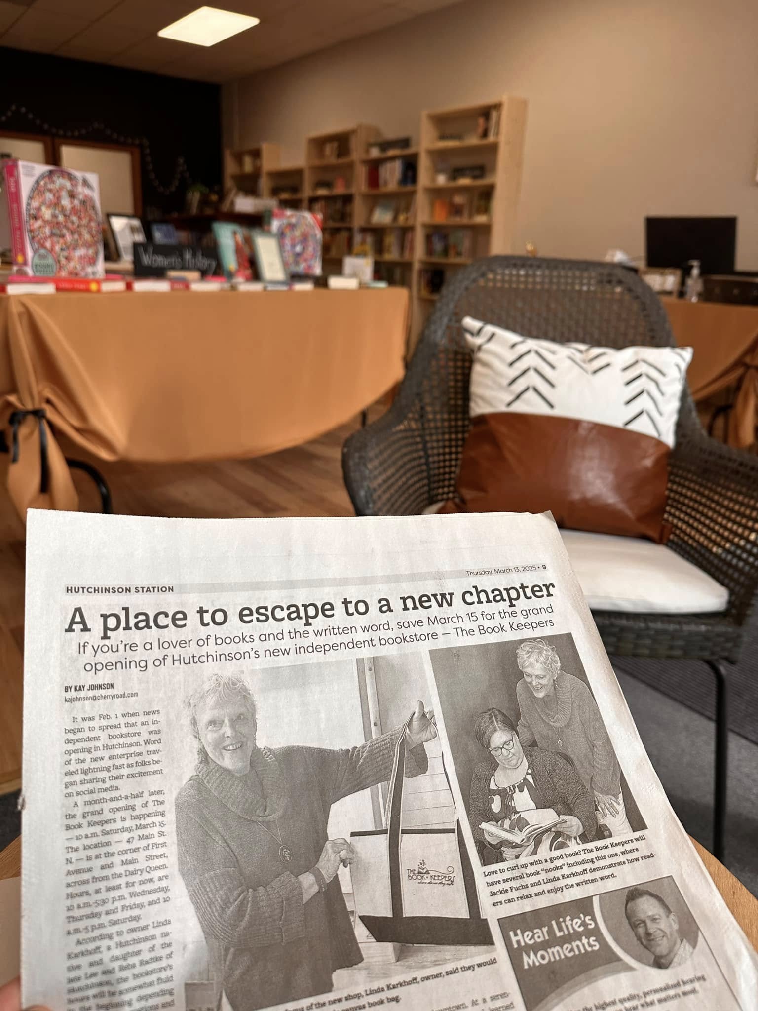 It has been a serendipitous journey from the beginning! Sitting outside on our patio a sunny afternoon in July 2025, my college roommate was sharing an independent bookstore experience she had on their recent trip around Lake Superior. She casually commented, “Hutchinson could use a place like that!” We both paused, thoughts racing, and the idea was planted. She lives in the metro area, but I had moved back to Hutchinson in 2017 (born and raised here) after a 50-year absence. We started researching, exploring, and expanding the idea. I started seeking any possible location; during one of these conversations, a friend whom I knew through another organization joined in. We chatted about barriers to overcome – location, funding, personnel. That last one was a major concern as both my “co-conspirator” and I were happily retired, and neither would be able to be tied down to a retail establishment on a continual basis because of family, travel, and/or proximity. A knowledgeable, book-savvy store manager was an absolute must. Through that second serendipitous conversation – enter Jackie. Since she learned how to read, she wanted to own a bookstore. (Whereas it never entered my head until well into retirement!) She moved back to Hutch in 2016 and had told everyone she met that she was interested in a connection with a bookstore. Well, we connected!