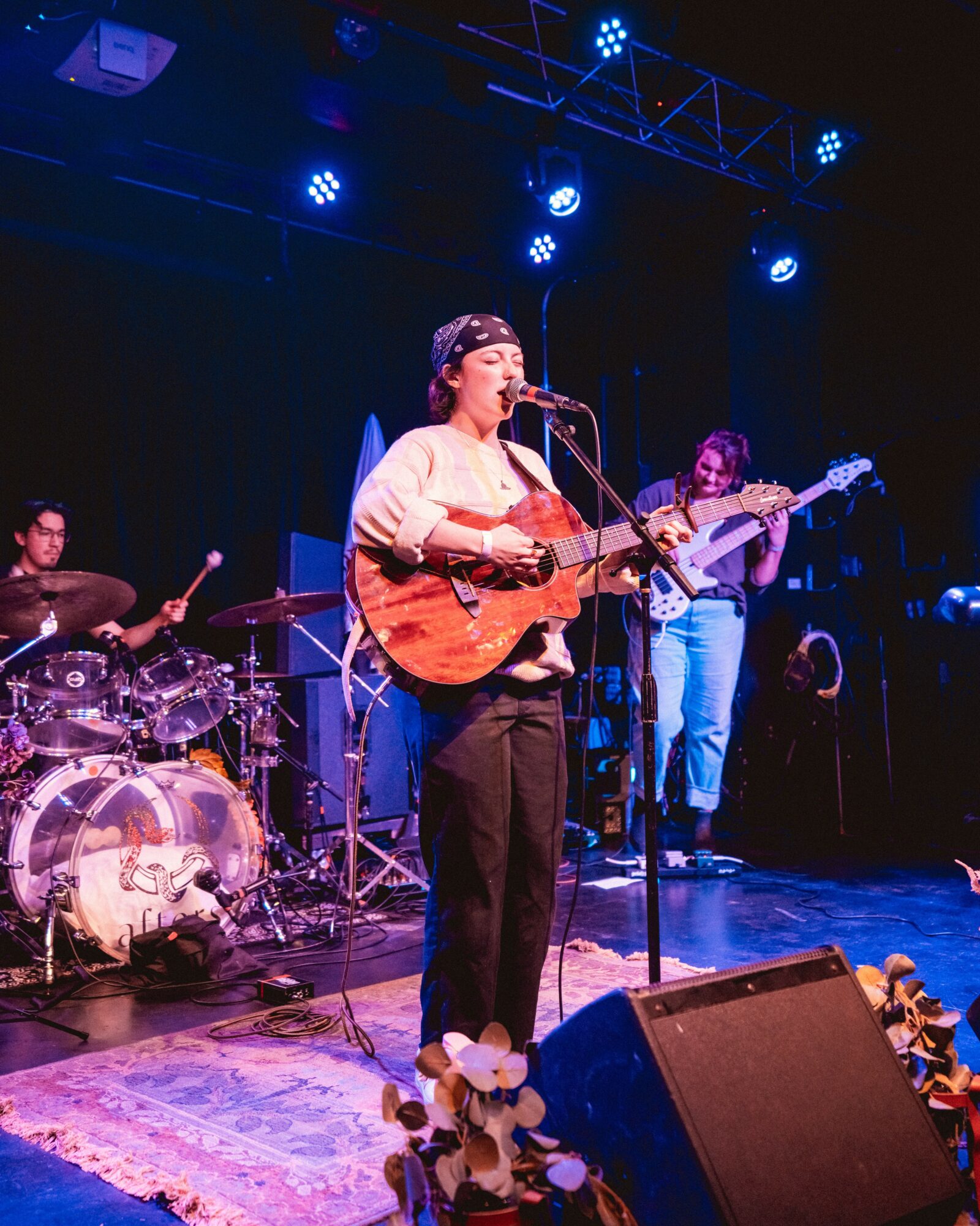 I was a musical theater/choir kid growing up and didn’t start writing my own music until I was in college. I always knew I wanted to write songs and play with a band but something about living in the suburbs in Minnesota made that feel like it could never be a possibility. Once I went to college & eventually moved to the city, I realized how many people had just gone for it – wrote some songs, found some friends, and just started playing music. I came out around this same time and the songs started to flow for me – writing about being queer & falling in love with a woman was incredibly healing and was the catalyst for my debut EP “Allergic to Dogs”. Once we had the whole EP recorded, Hunter SinClair Hawthorne (keys & production) and I found a group of talented musicians and friends to join the band. Riley Jacobson (electric guitar) joined first – he had recorded bass on the EP, so it was a no-brainer to ask him to join (though his role in the band eventually shifted over to electric guitar). Next was Maddie Thies (bass), an absolute icon in the local scene here in Minneapolis, who has not only held down the low end in our band but has also played a crucial in the band’s growth. Last but absolutely not least, Aurelio Sandoval Pogatshnik (drums) joined the band in the summer of 2024 and has been an amazing addition to our sound. I’m not really sure what point we’re at today, but what matters is I am making music with my best friends & we are having so much fun & playing rooms we never could have dreamed of playing even one year ago.