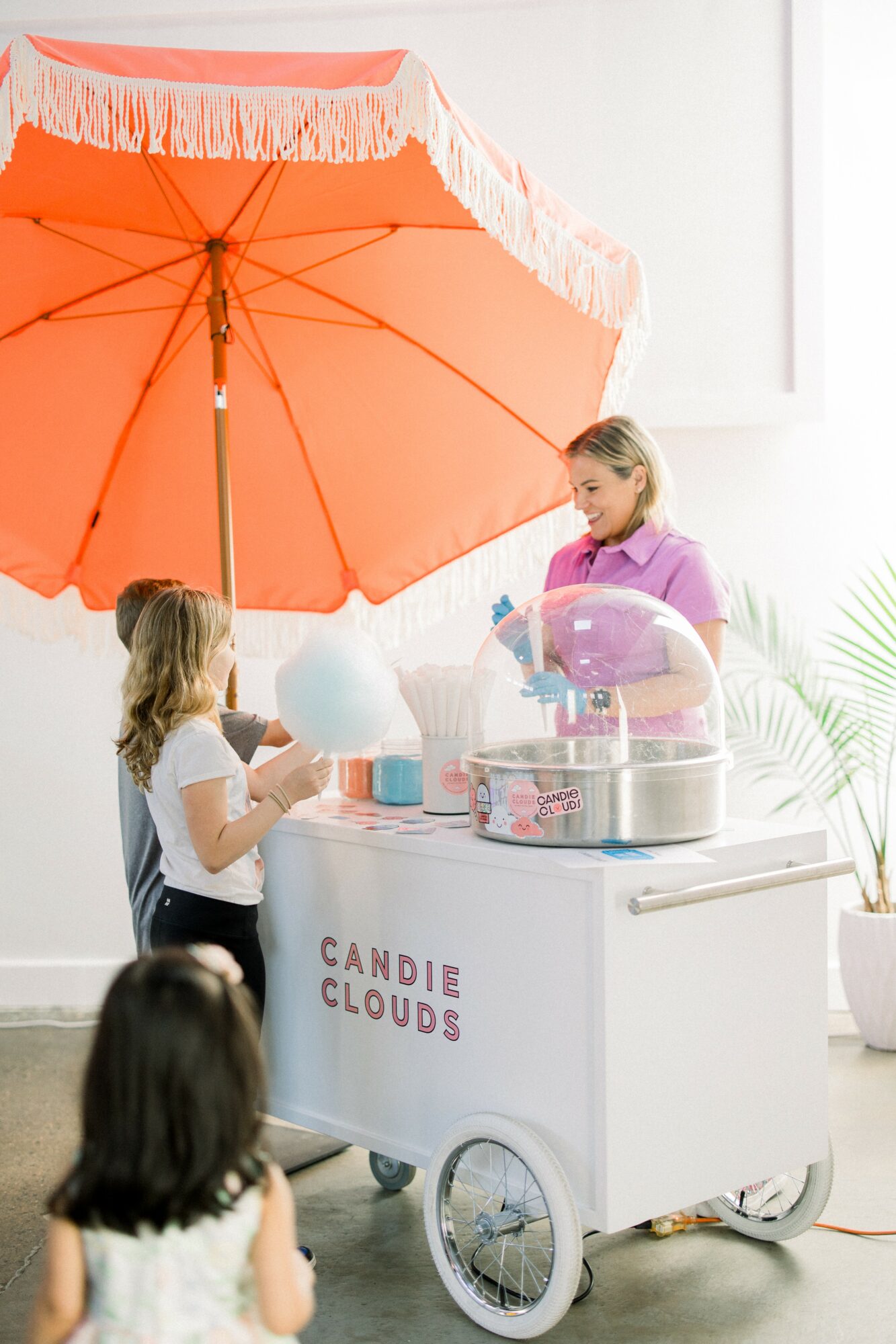 Candie Clouds really started by accident — during the pandemic! It was my daughter’s 7th birthday, and the bakery we usually ordered cakes from had gone out of business. Since everyone was having outdoor parties at the time, I thought, ‘Why not buy a cotton candy machine as a fun treat?’ I figured I’d just break it out once in a while for the neighborhood kids after the party.