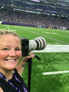 From that day on, I remained in contact with Andy throughout the years. About once a year he would give me a pass to shoot a game and each time I felt it was crucial to do a better job than the last and continue to fight for a spot on the team. Then it happened; the Vikings made the playoffs and had a home game that would determine their fate. Andy needed an extra set of hands to help capture fan experience. So no, it wasn’t the glamorous, be on the sidelines shooting action, type of job, but, my motto has always been to be the best at whatever I am doing, so I went into it thinking, ok, I’m going to take the best photos of the fans that anyone has ever seen. That game was one to remember for many reasons as Stefon Diggs made a last-minute play to win the game that is now dubbed the Minneapolis miracle, and it was also the game that propelled me into shooting all home games from then on out for the Vikings.